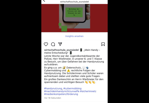 Ergänzend zum Vortrag „Souveräne Kinder – entspannte Eltern“ von Marcel Musch (BayernLab) informierte Polizeioberkommissar W. Wießmeier von der Polizeidienststelle Wunsiedel über „Digitale Welten – Rechtliche Folgen“. Ziel des Vortrags war es, den Schülerinnen und Schülern bewusst zu machen, dass ihr Verhalten im Internet bei z. B. Beleidigung, übler Nachrede, Verleumdung etc. durchaus strafrechtliche Folgen mit sich bringen. Alle im Vorfeld notierten Fragen konnten nicht von Herrn Wießmeier beantwortet werden – dafür waren es zu viele. Aber der Fragenkatalog macht deutlich, dass diese Infoveranstaltung tatsächlich wichtig war, um die Schülerinnen und Schüler noch einmal dafür zu sensibilisieren, ihr Verhalten im Internet zu überdenken. Hauptanliegen war der refelektierte und verantwortungsbewusste Umgang mit digitalen Endgeräten.