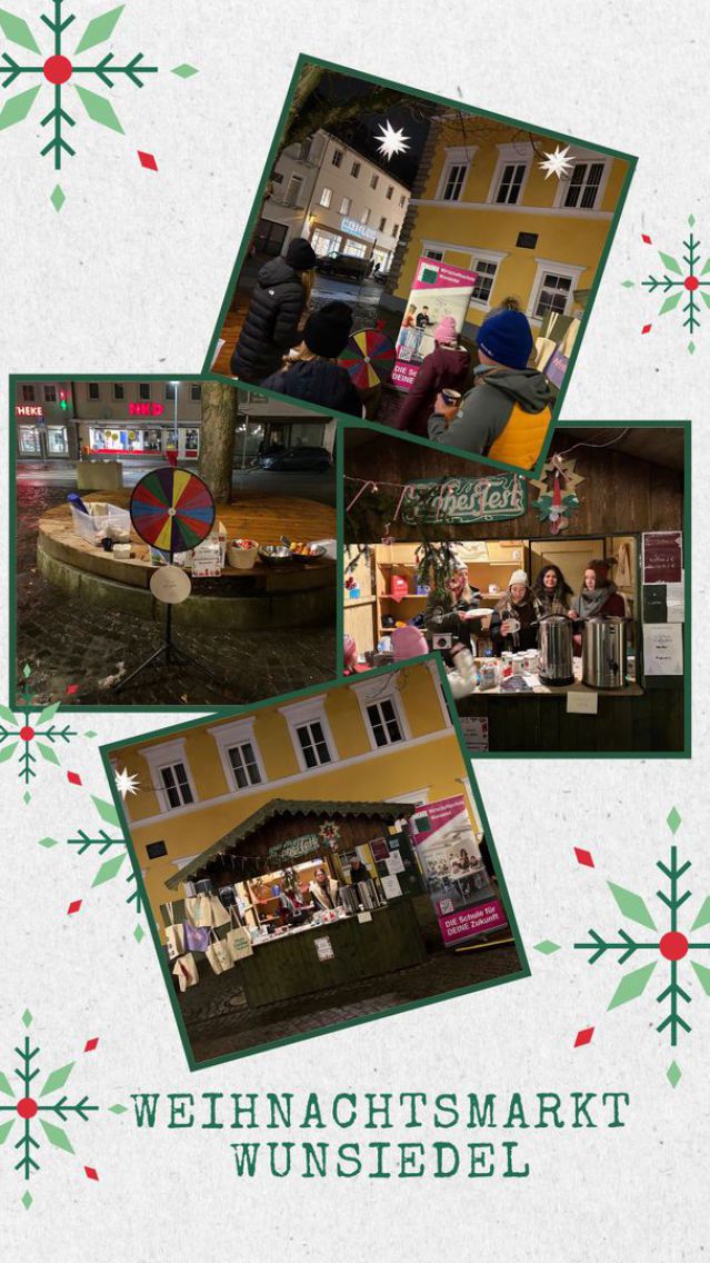 Zum ersten Mal waren wir als Schule auf dem Wunsiedler Weihnachtsmarkt vertreten. Im Angebot gab es heiße Getränke und Leckereien: Punsch, Kaffee und frische Waffeln luden zum Verweilen ein. Zusätzlich bot der Stand selbstgebastelte Artikel sowie Taschen mit Weihnachtsmotiven oder -sprüchen an, die mit Liebe zum Detail entstanden waren und jedem Marktbesucher eine Freude bereiten sollten. Ein echter Publikumsliebling war das Glücksrad: Mit jeder Drehung konnte man kleine Preise gewinnen.