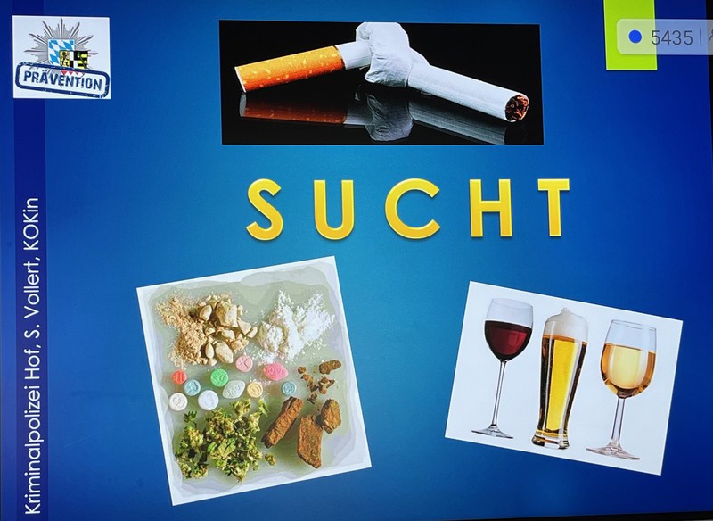 Organisiert wurde dieser Suchtpräventionstag für die 6. und 7. Klasse von Anja Högemeier, Sozialpädagogin an unserem Schulzentrum. Durchgeführt wurde dieser Tag von der Kriminalpolizeiinspektion Hof, Kommissariat 4. Frau Kriminalhauptkommissarin Stefanie Vollert wurde von vier Sozialpädagoginnen unterstützt.