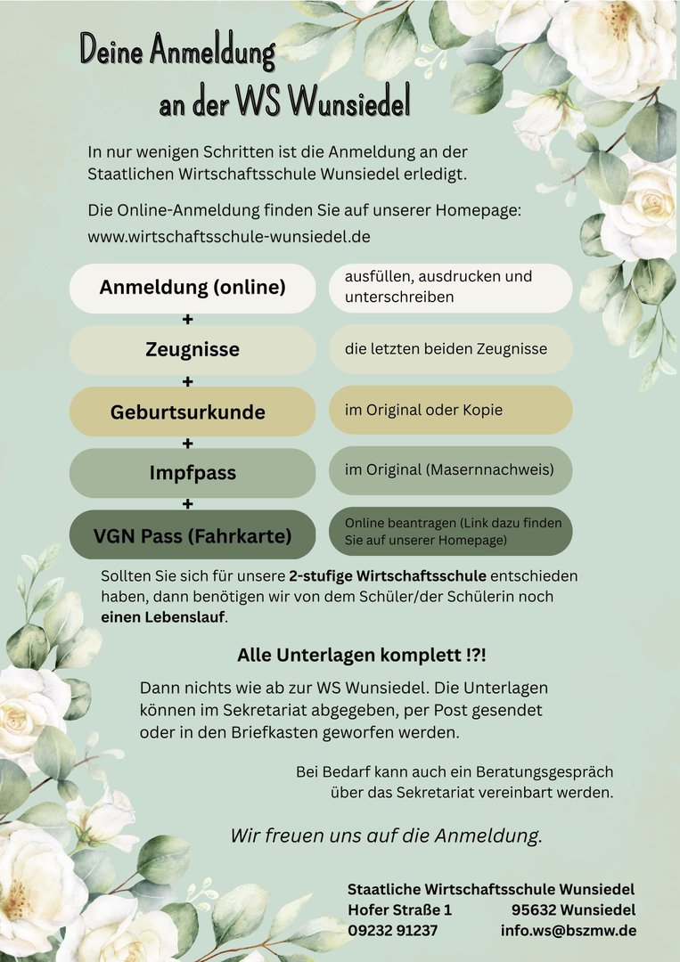 Anmeldung an der Wirtschaftsschule Wunsiedel